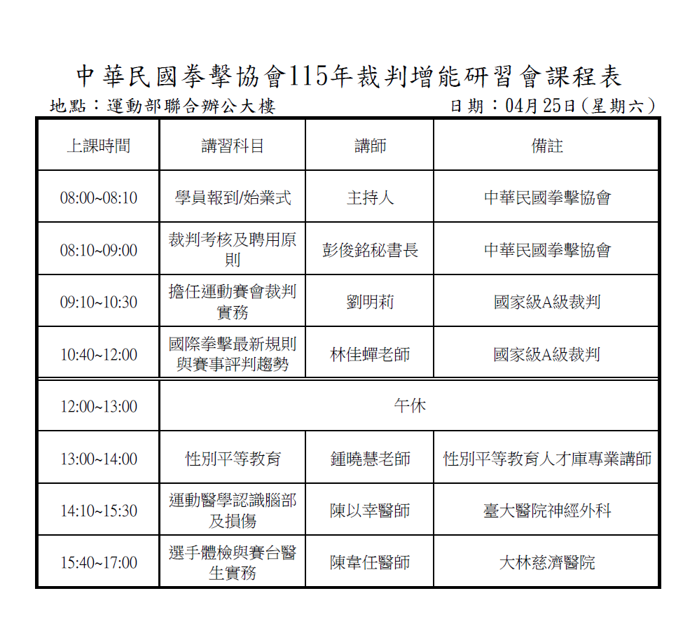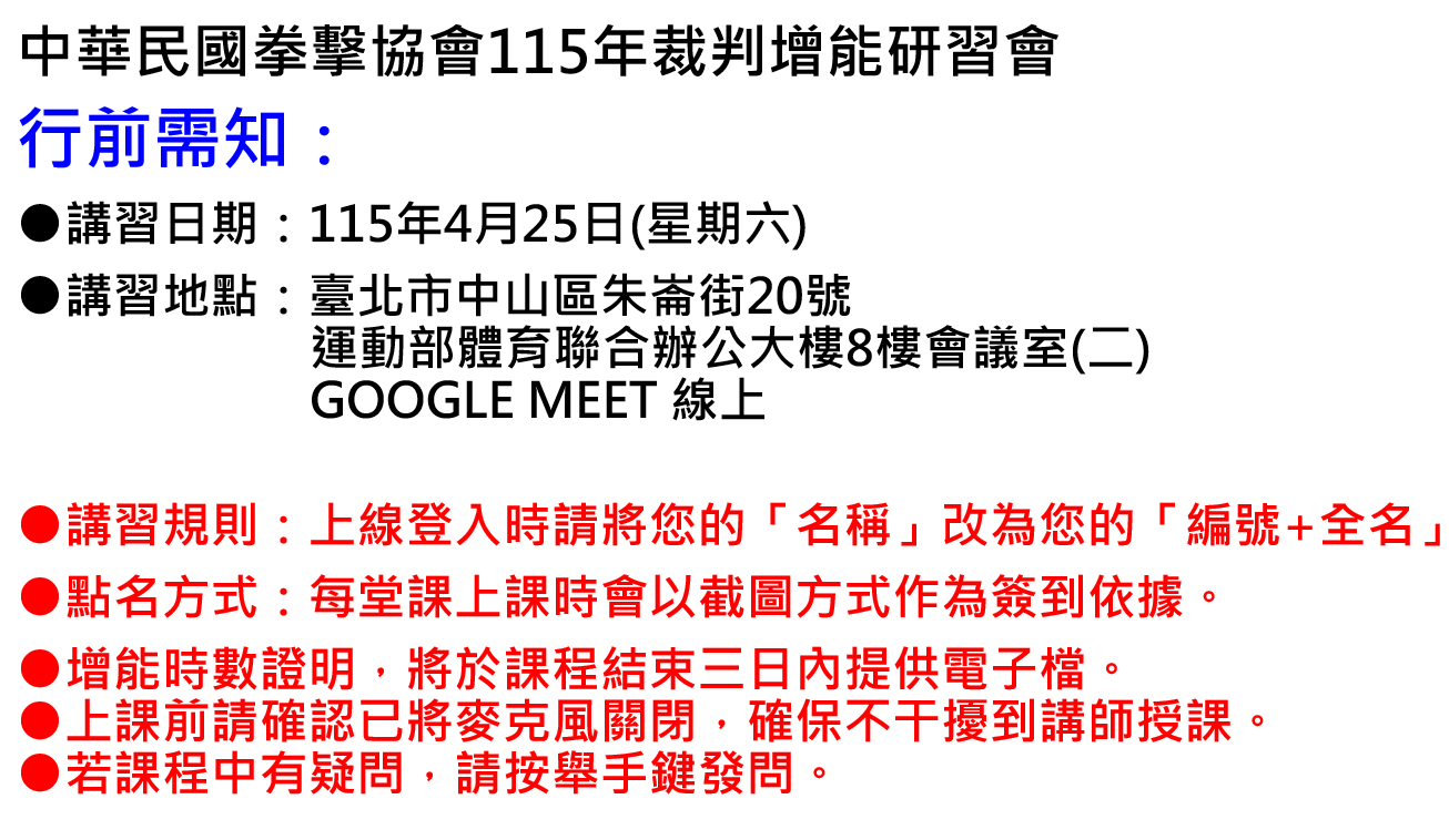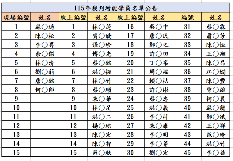 【公告】115年04月25日裁判增能研習會學員名單/行前需知